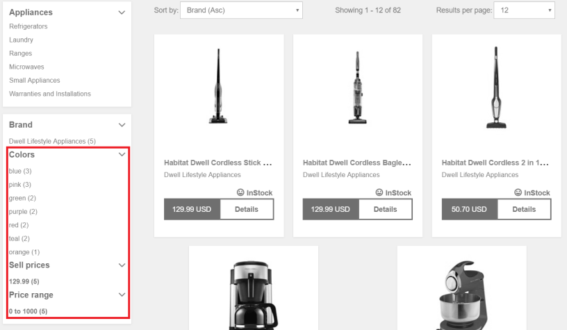 - Example code on how to populate the values that will be searched on. For example, Size, Color Style, Price range, percentage off etc.